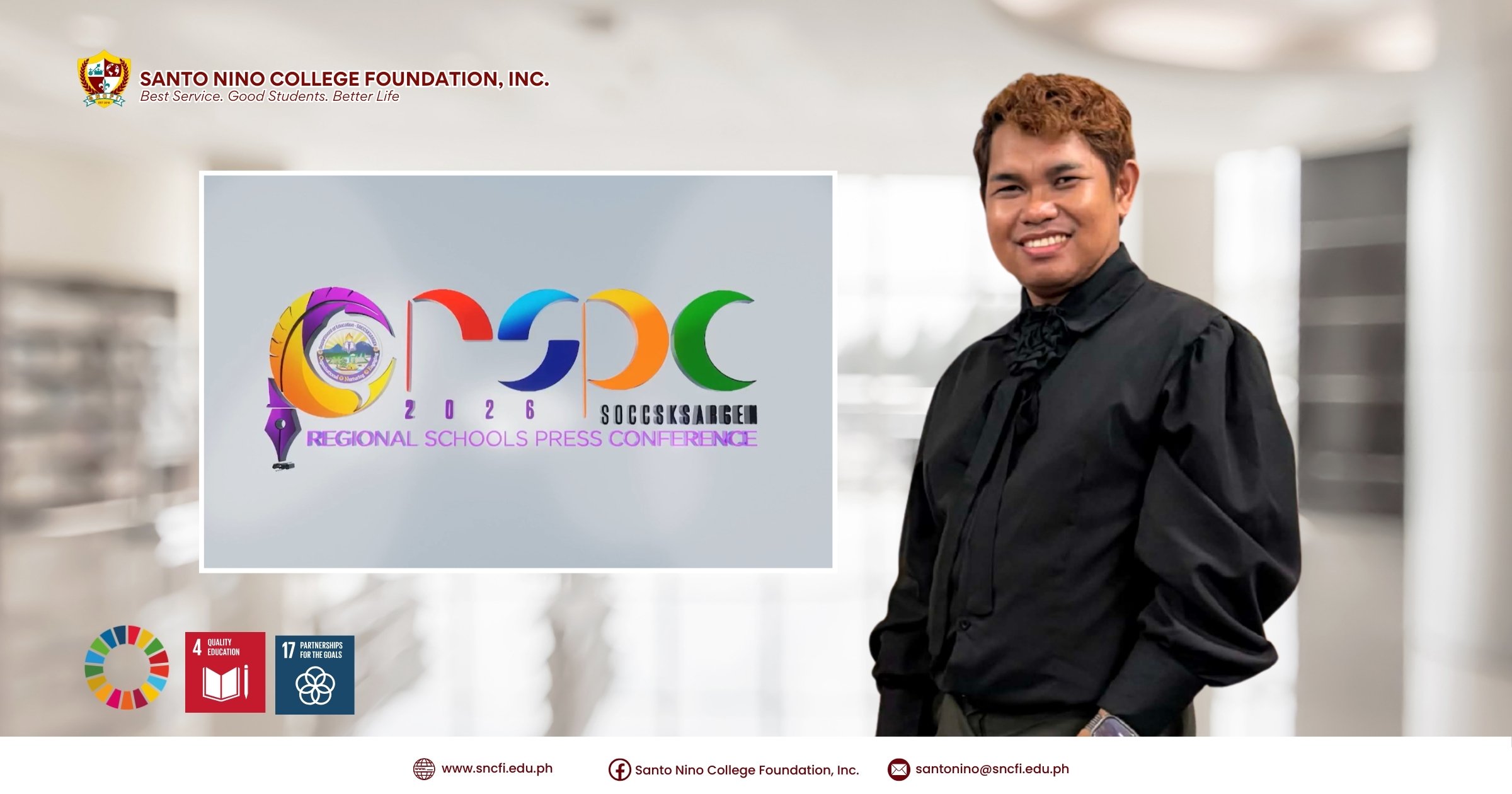 Reinforcing its strong commitment to academic leadership and campus journalism, Santo Nino College Foundation, Inc. (SNCFI) proudly announces that its Academic Director, Dr. Jun Y. Badie, LPT, served as one of the official judges during the RSPC 2026 (Regional Schools Press Conference).